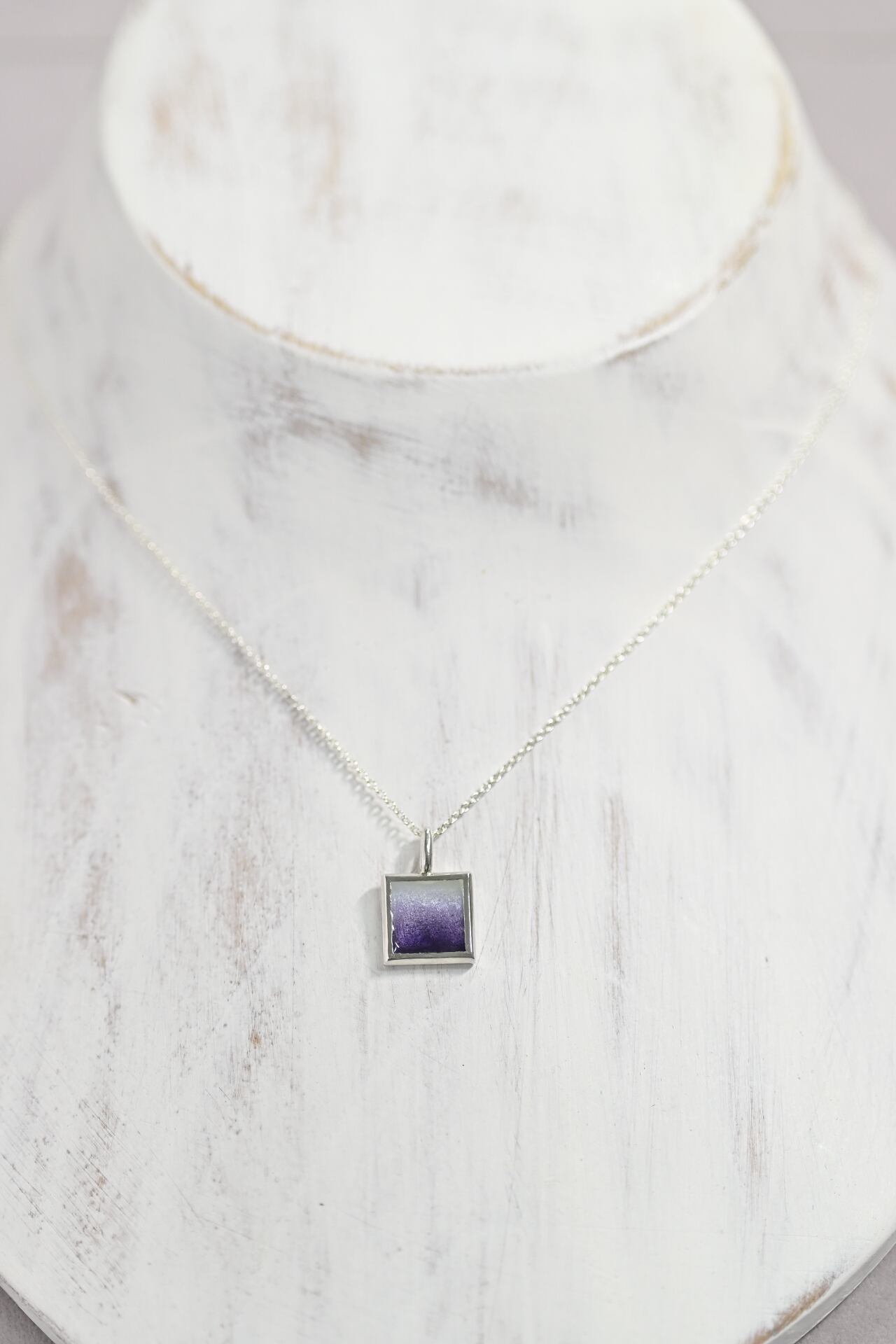 銀のペンダントトップに施された鮮やかな透明色の紫のグラデーションに、高貴な印象を感じます。
