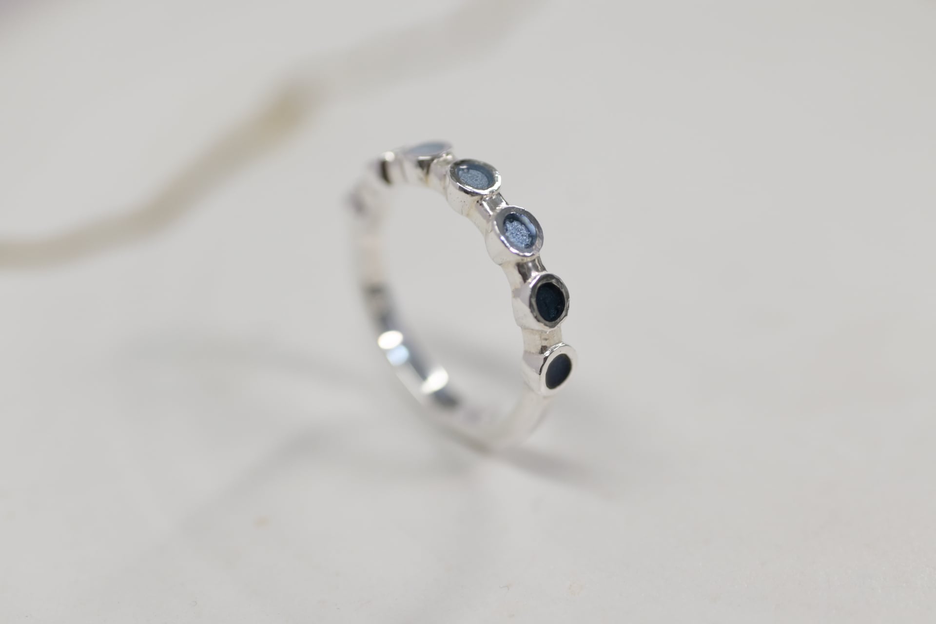 指輪の素材は、七宝の透明感が美しく仕上がるよう、純銀を使用しております。