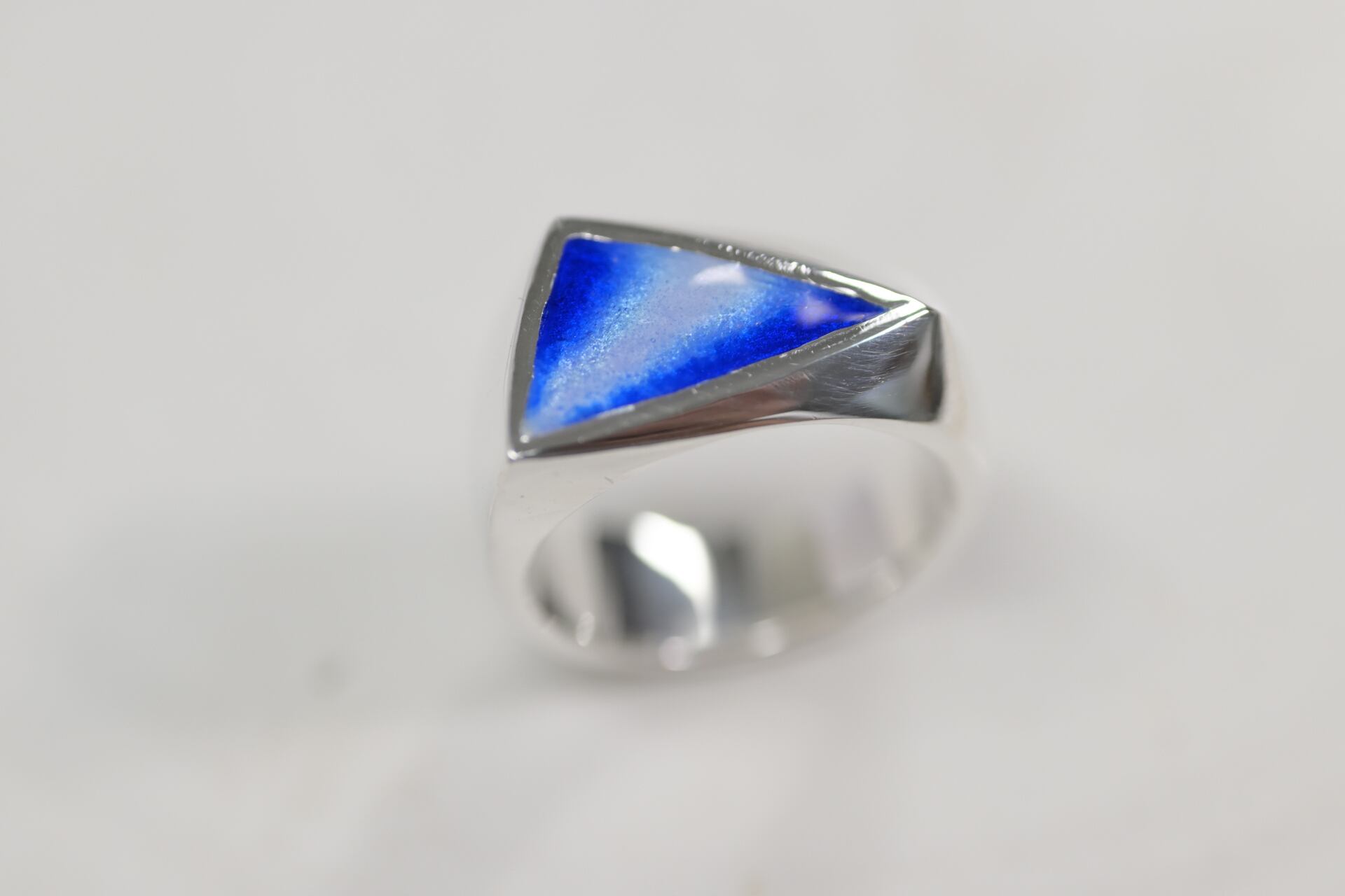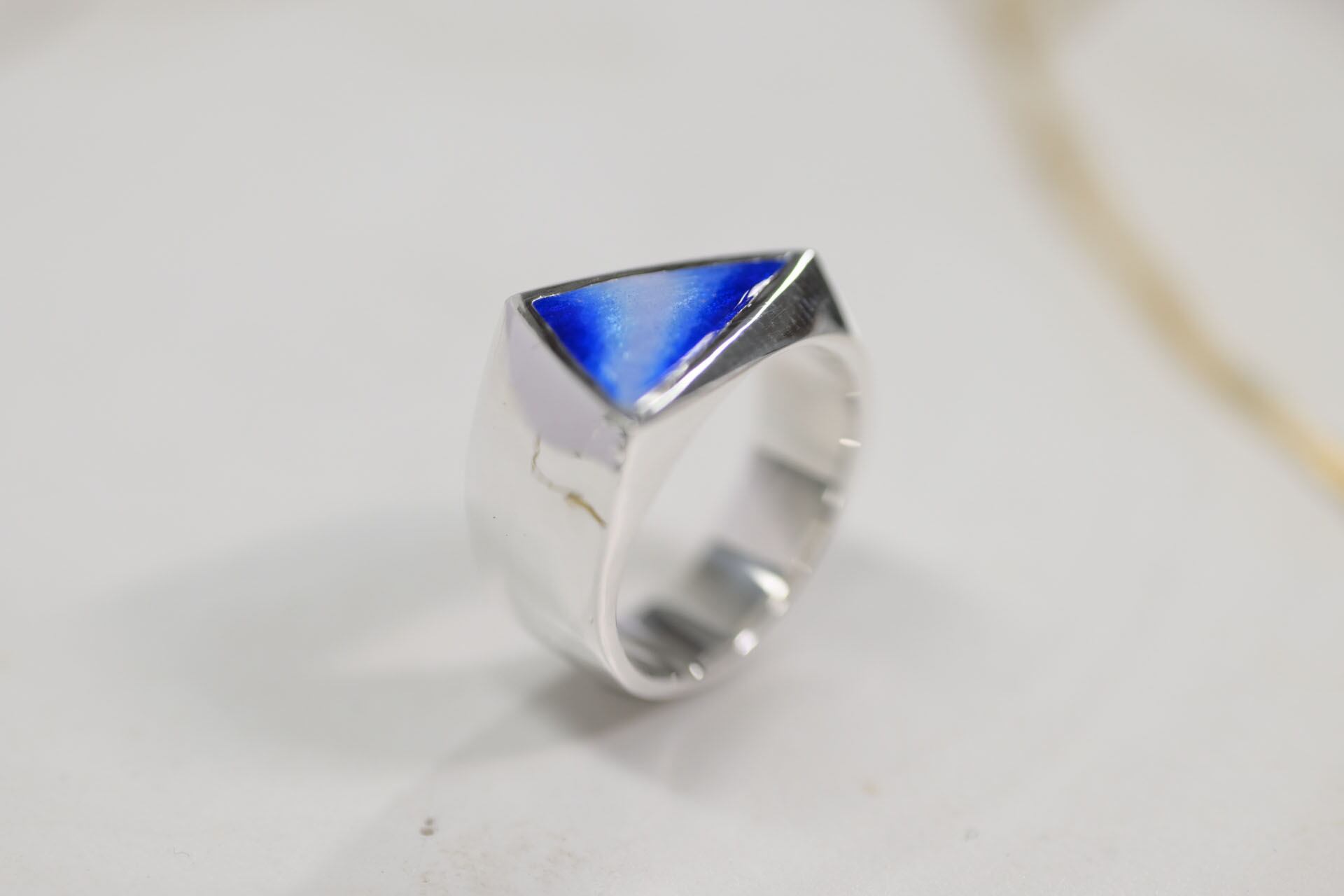 size 10.5 Enamel signet ring triangle (blue)