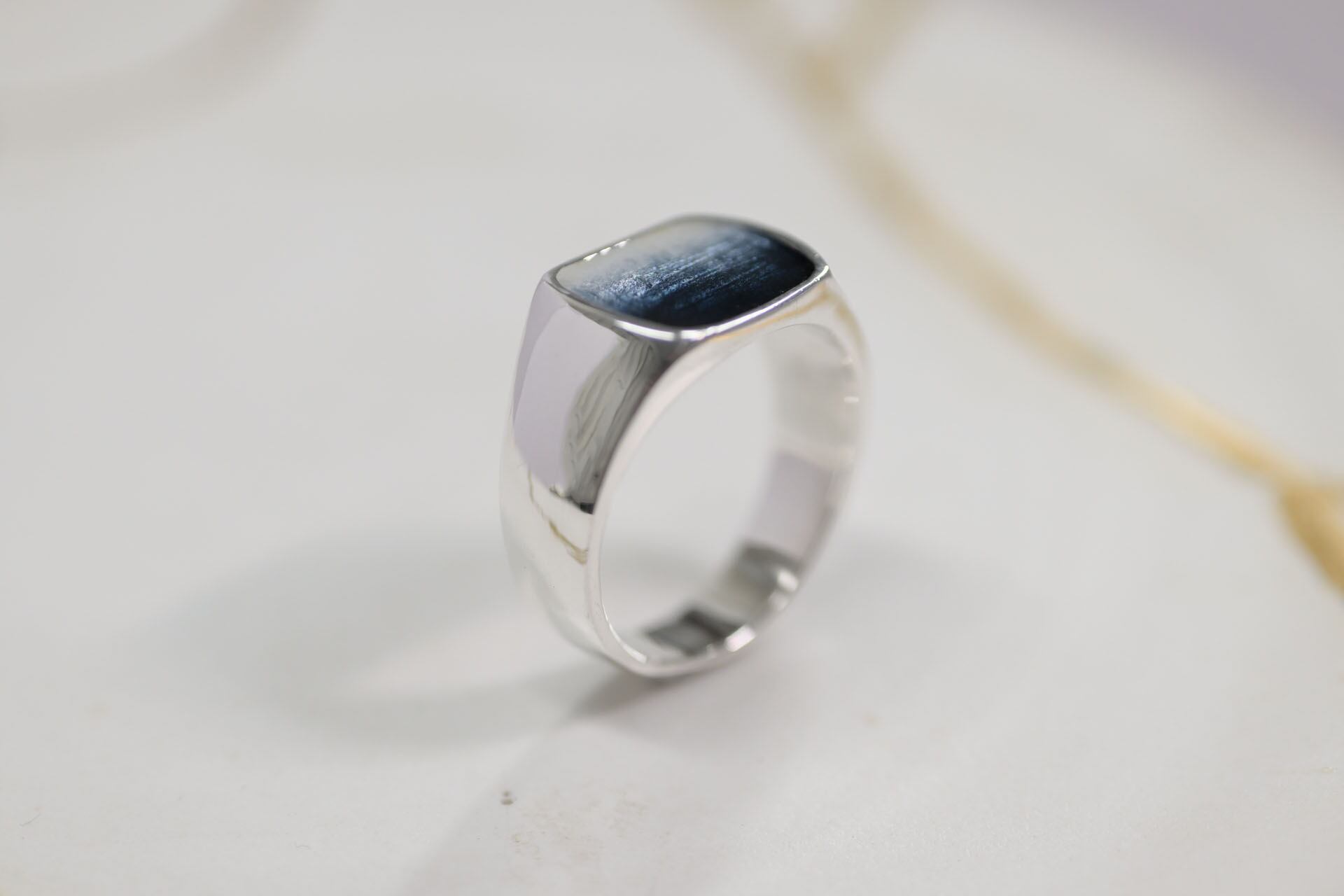 指輪の素材は、七宝の透明感が美しく仕上がるよう、純銀を使用しております。