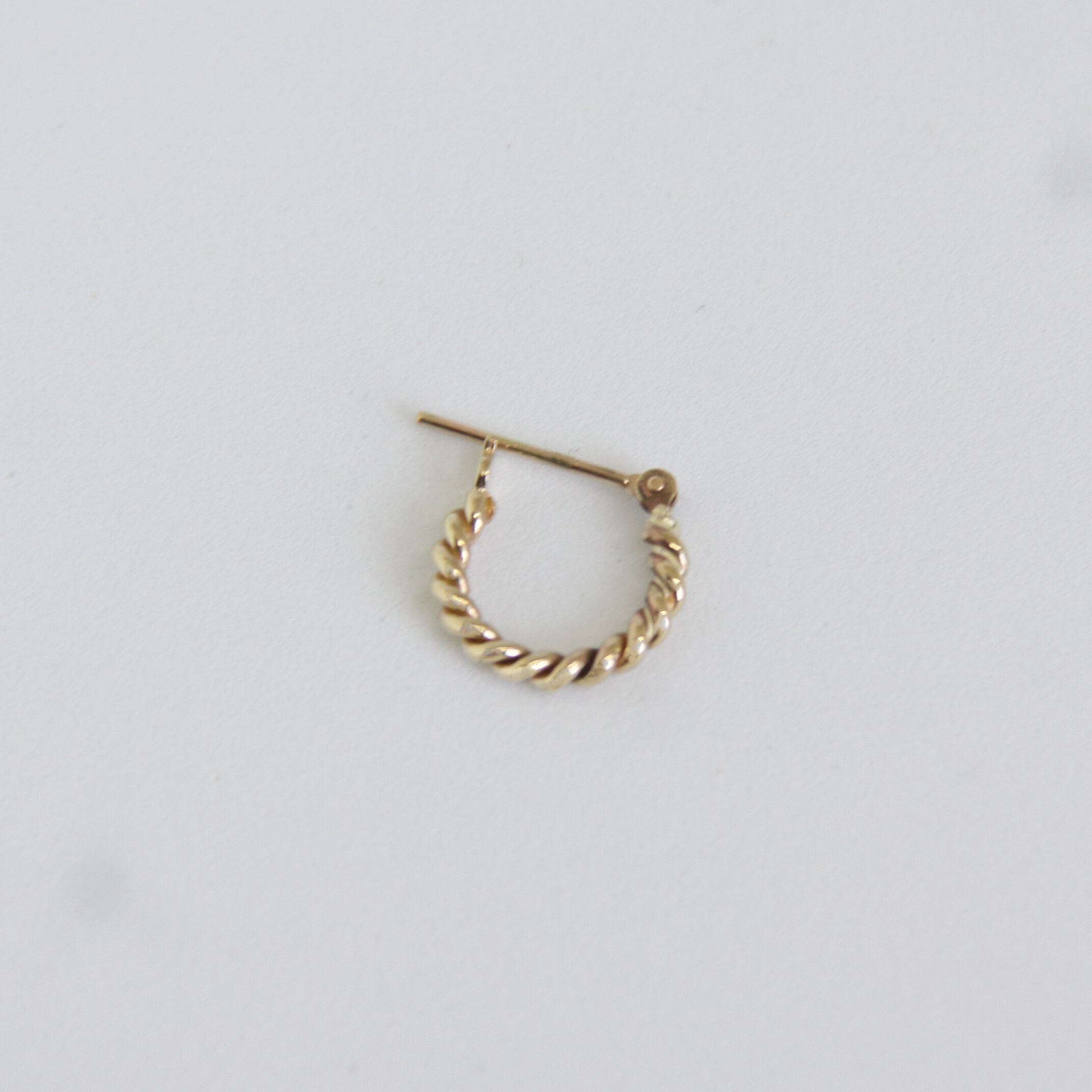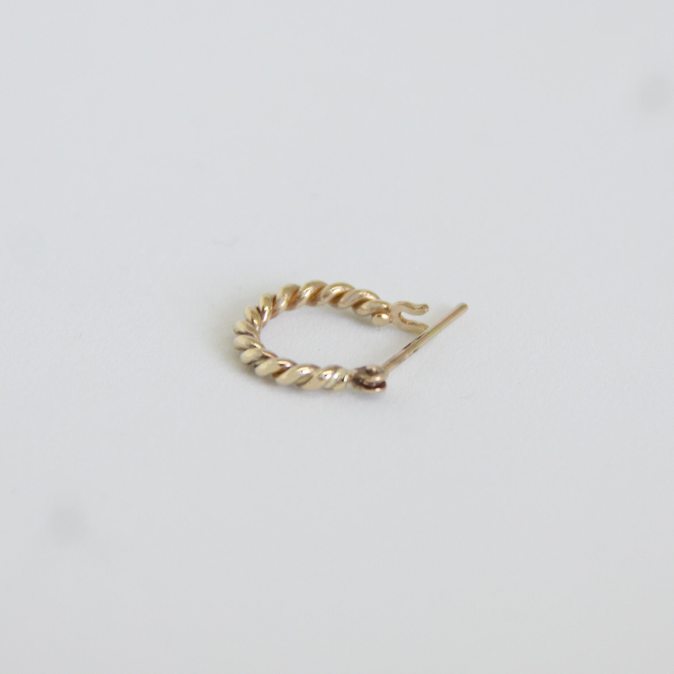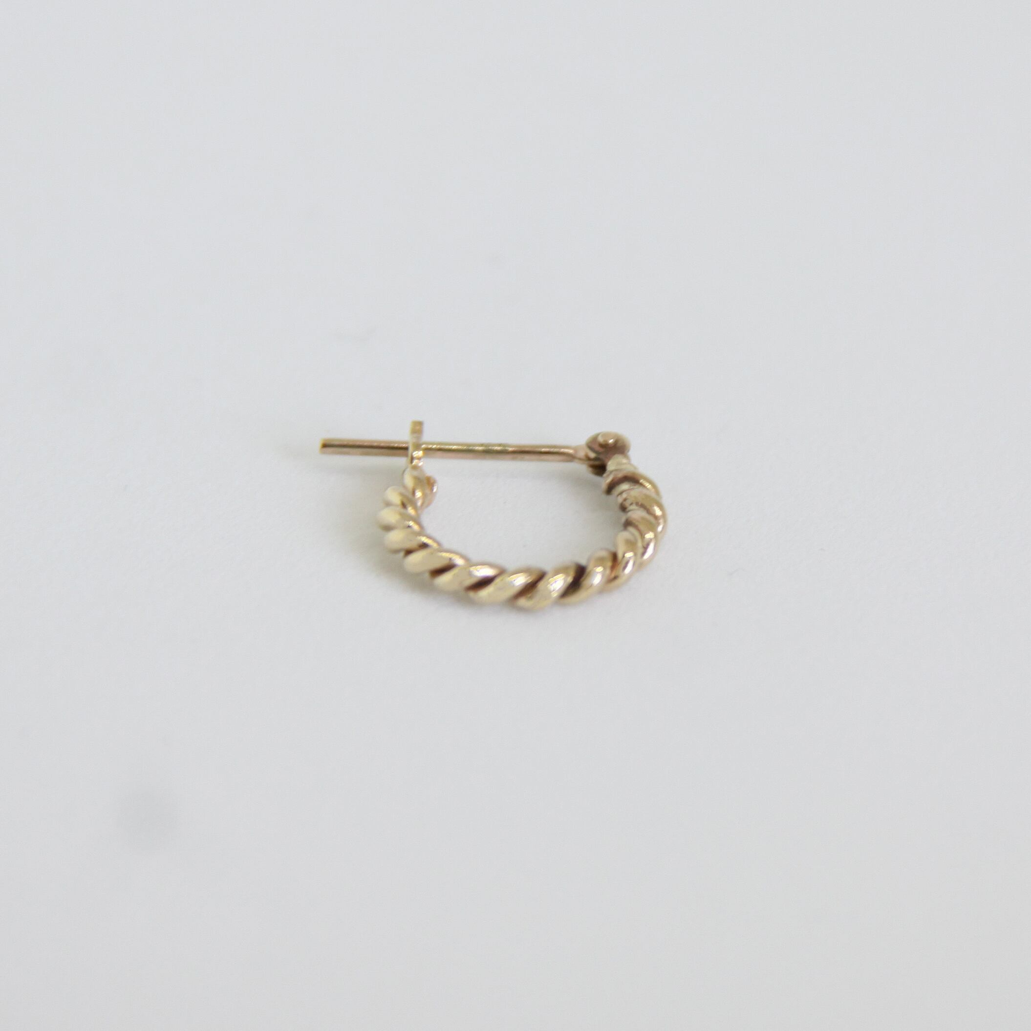 ネジネジをフープピアスにしました。シンプルなデザインながら、撚ったデザインが綺麗めな印象を与えます。カジュアルからドレスまで、コーディネートを選ばず引き立ててくれます。