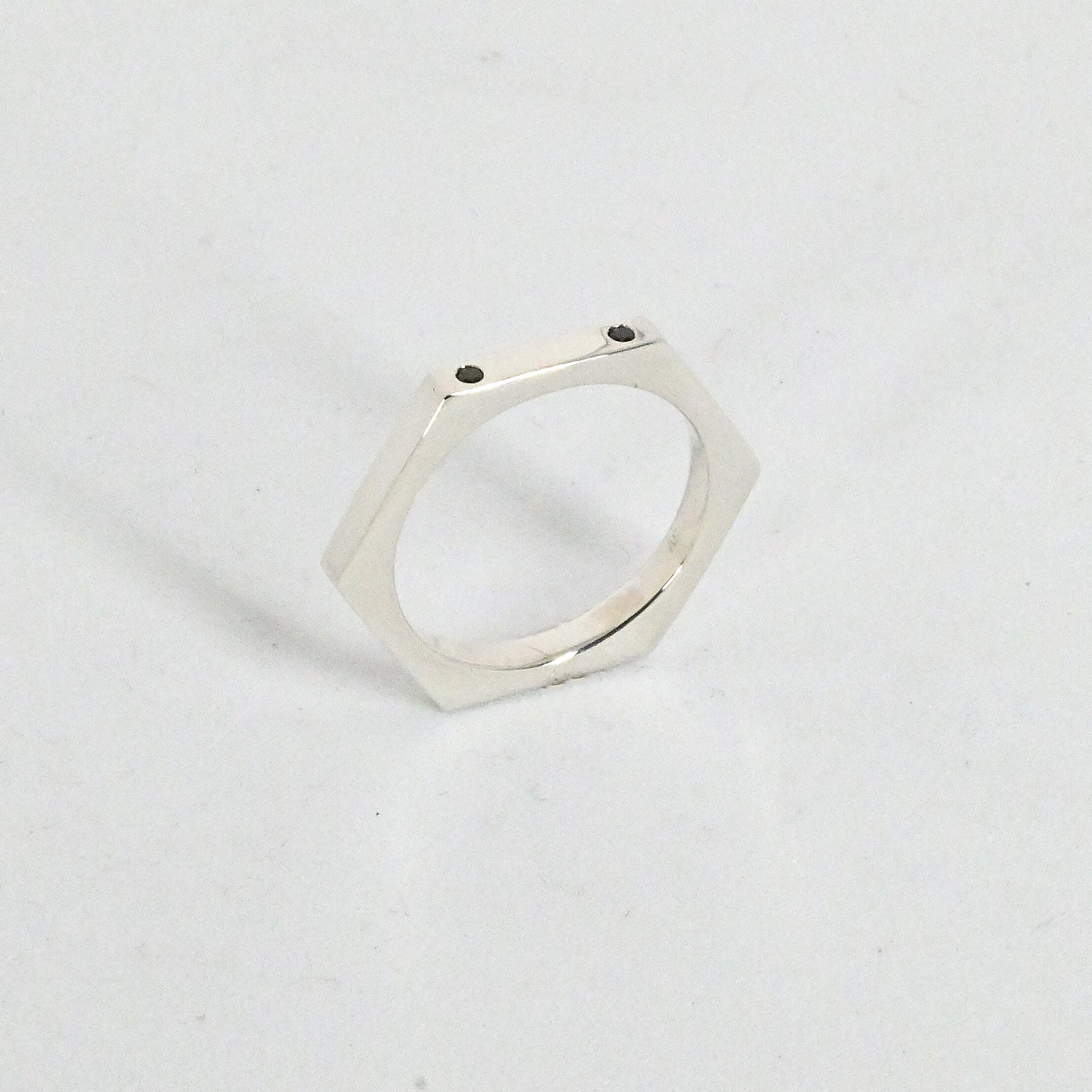 hexa ring silver blackdia size12.5