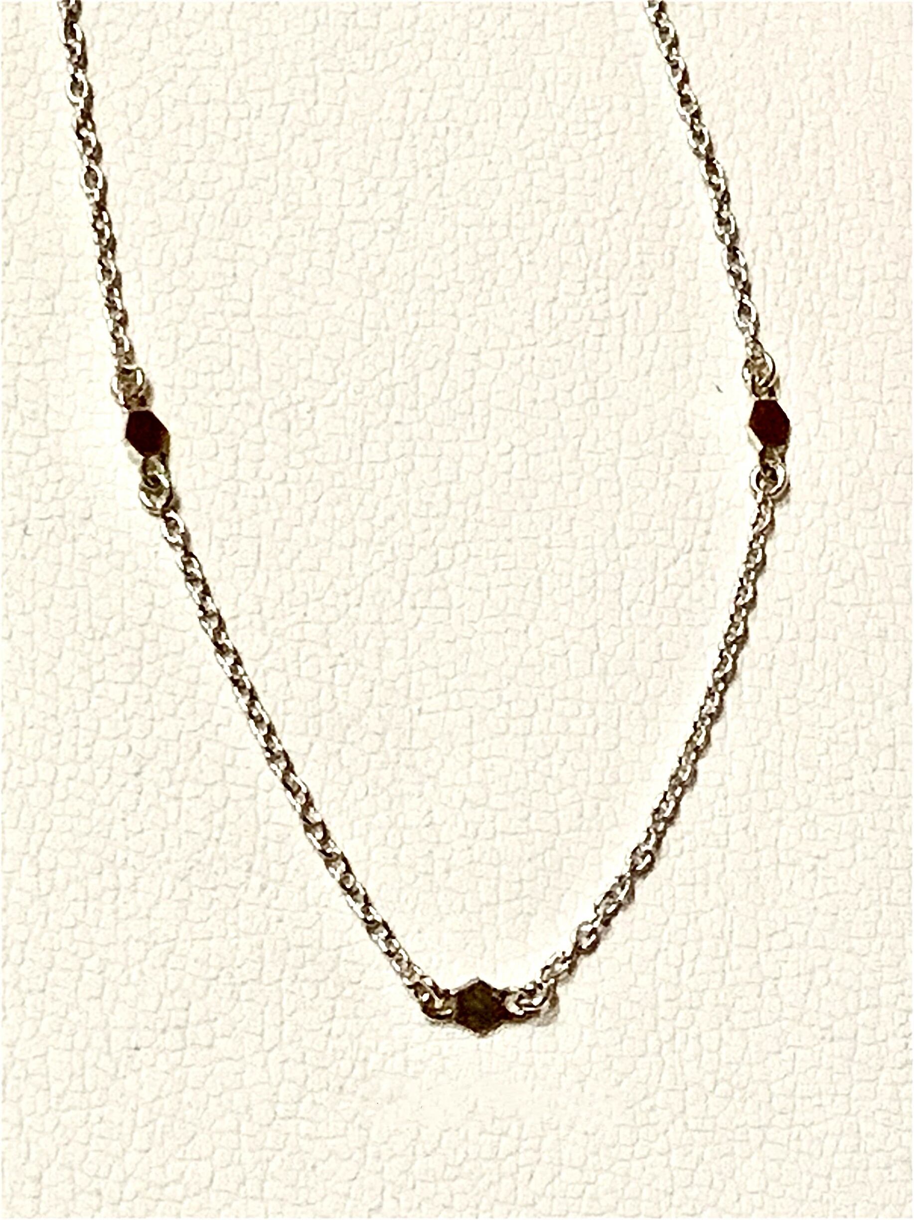 チェーンが動くと小さな六角形パーツがキラキラと輝き、