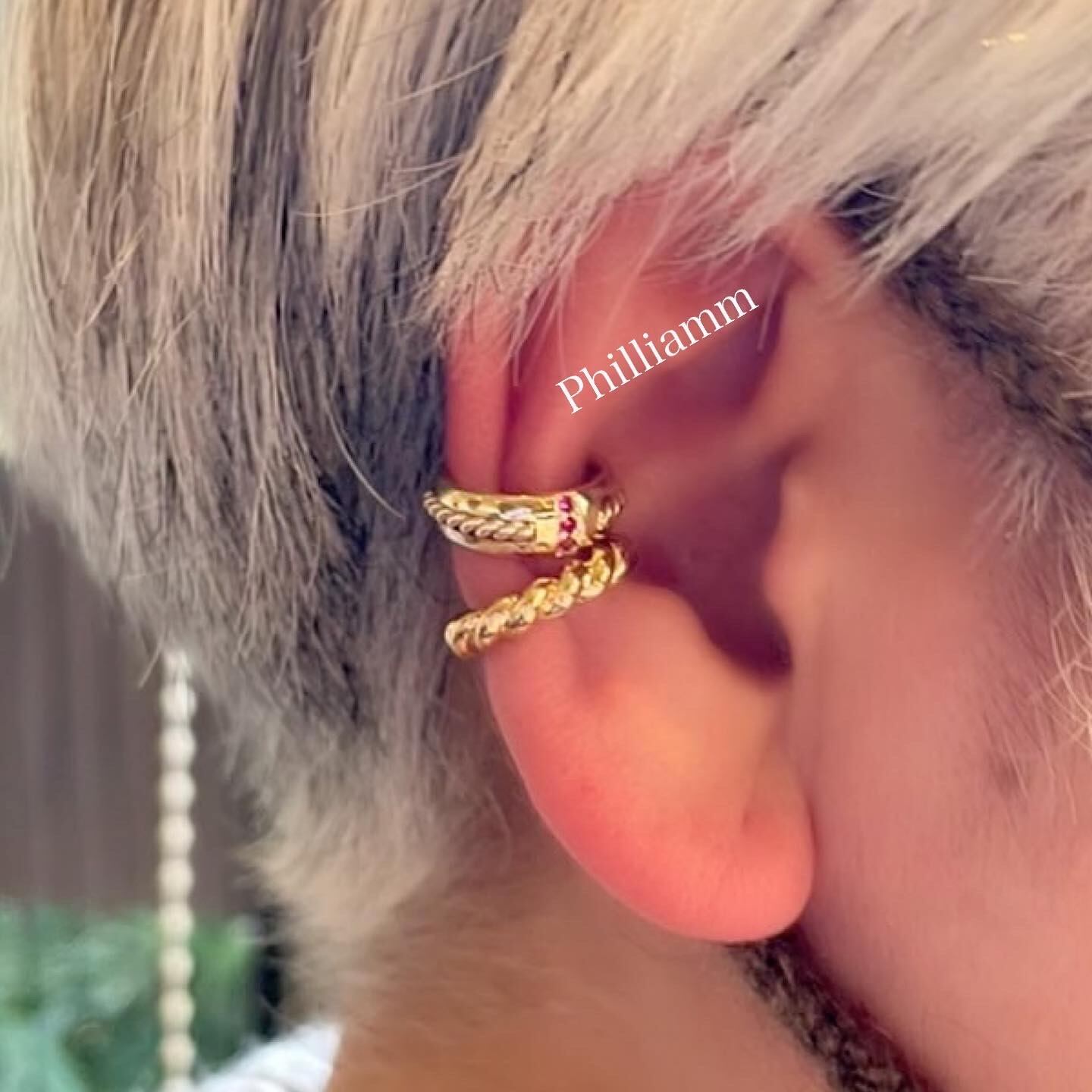 ネジネジを分割して、間に石を留めたイヤカフ。