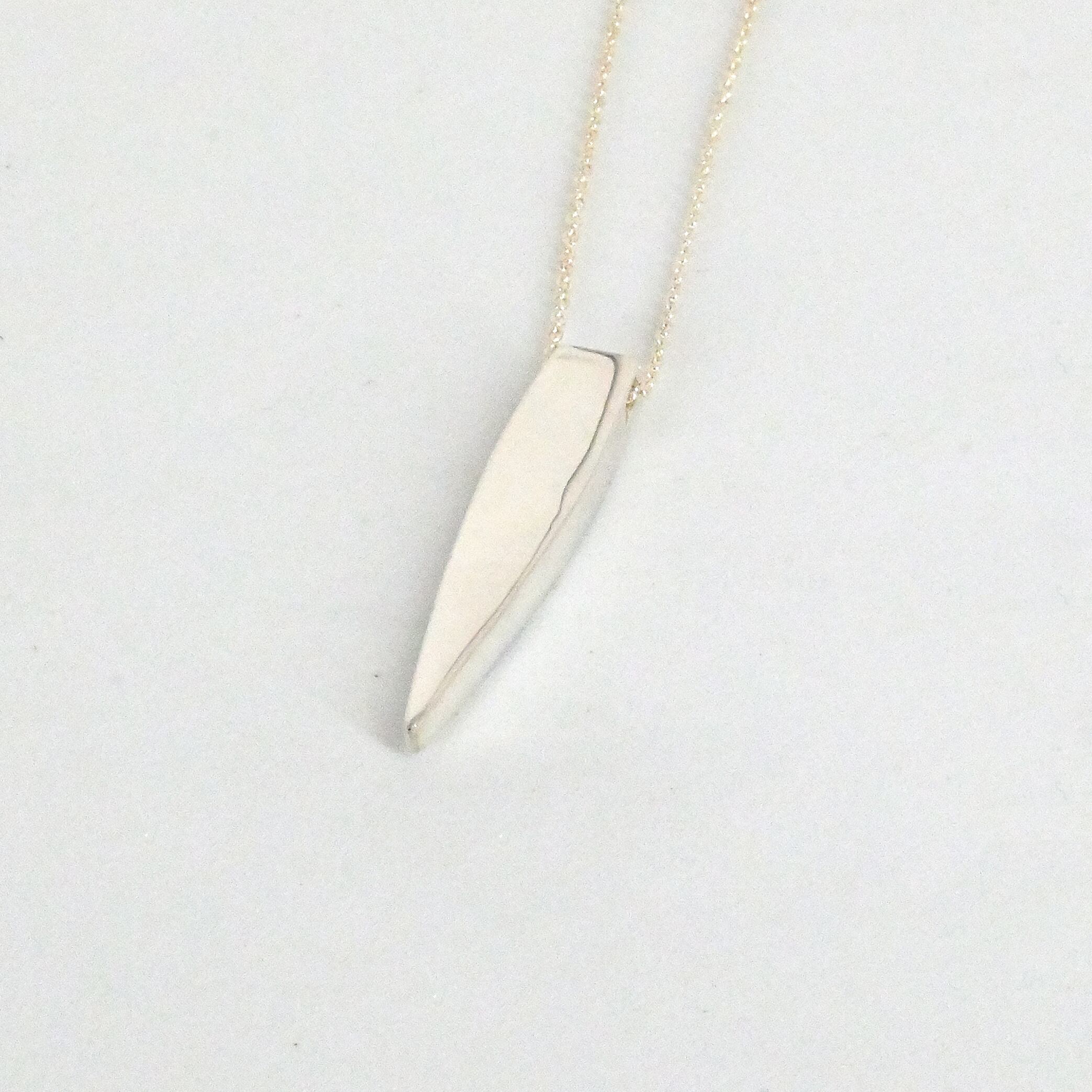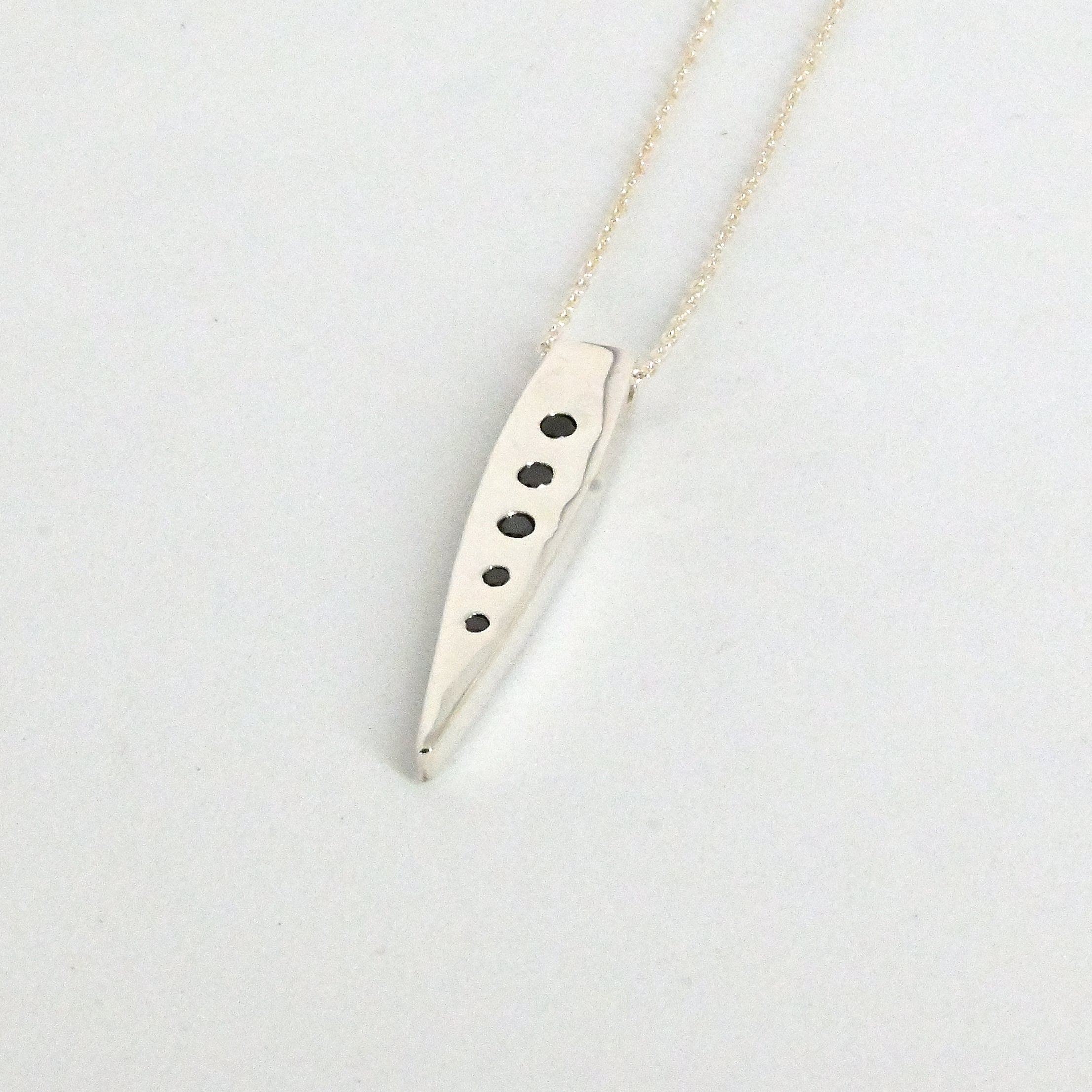 牙をイメージしたペンダントヘッドにブラックダイヤをシンプルに伏せこみ留めしました。