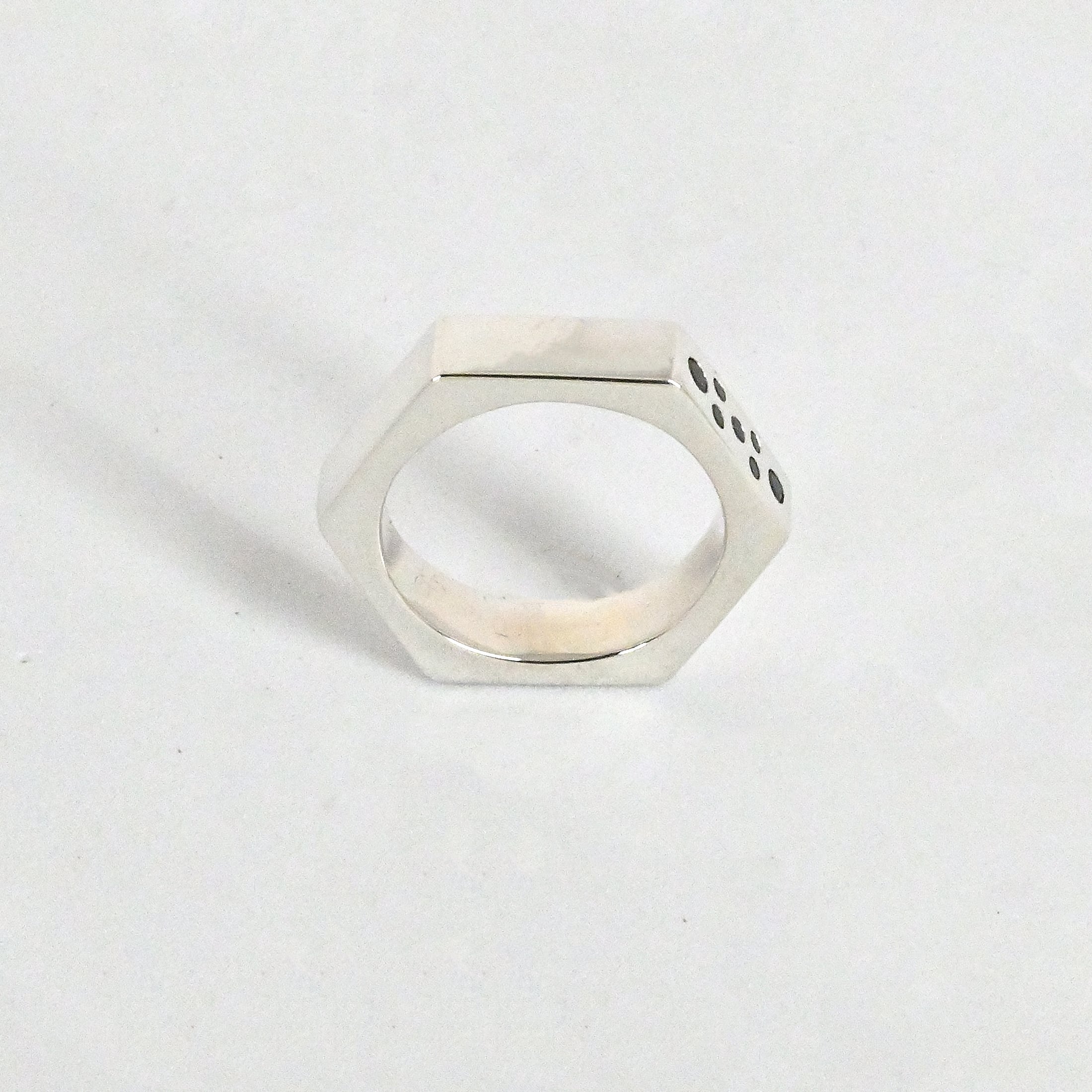 hexa ring の幅を広くしたものです。工業的デザインと幅広のボリューム感に、