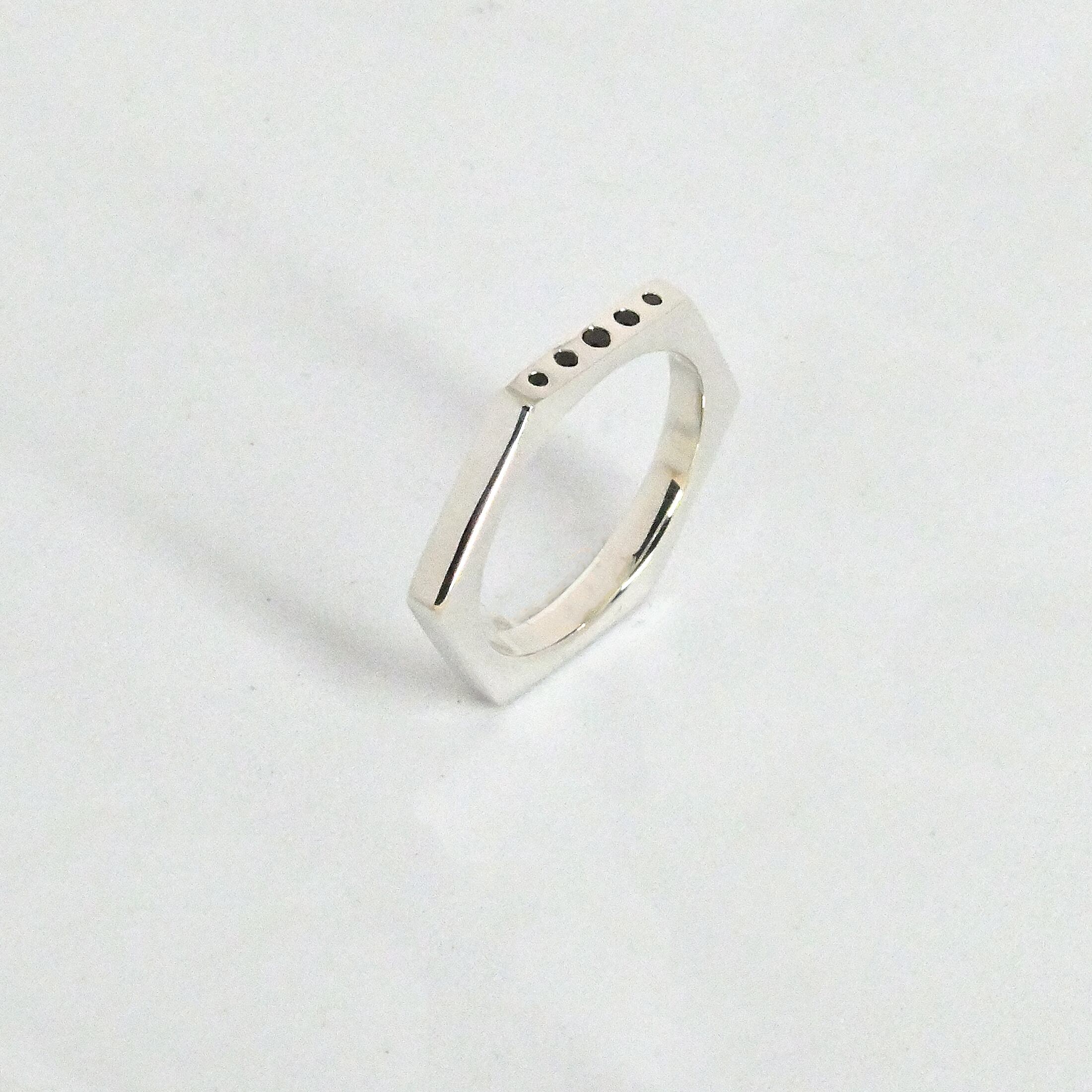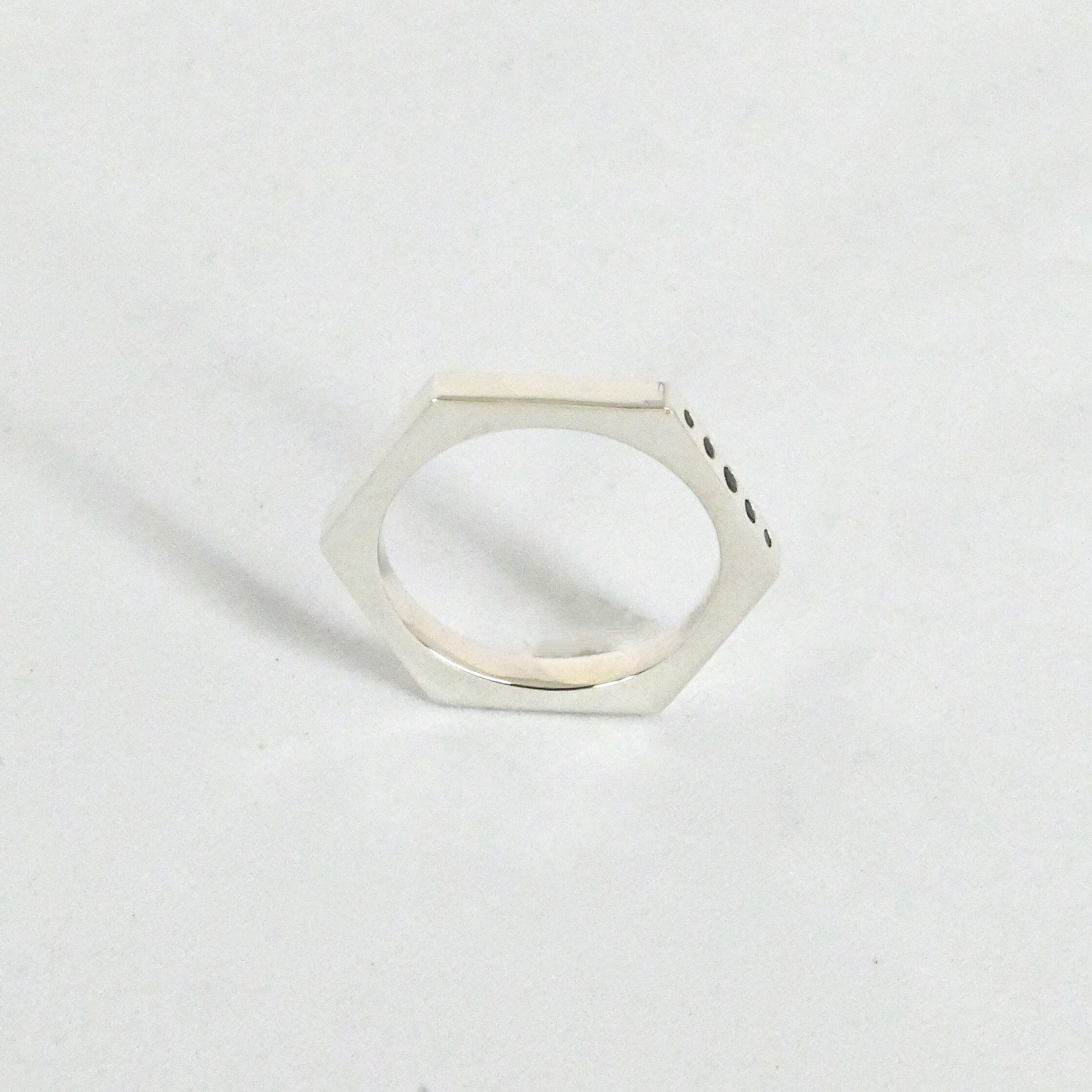 hexa ring の一面に一文字のグラデーションのブラックダイヤを留めました。